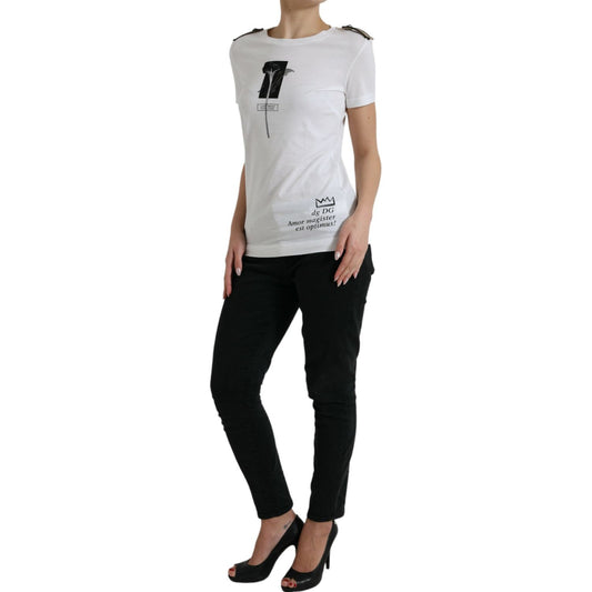 تي شيرت Dolce & Gabbana الأنيق المصنوع من القطن بفتحة رقبة دائرية ومزين بالزهور