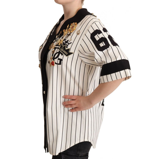 بلوزة قطنية بيضاء أنيقة مزينة بالكريستال من دولتشي آند غابانا