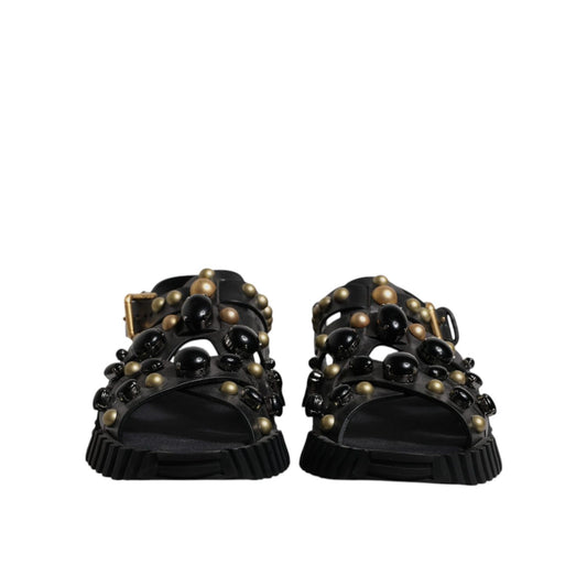 Dolce & Gabbana Black Leather Studded Slides Sandals Shoes