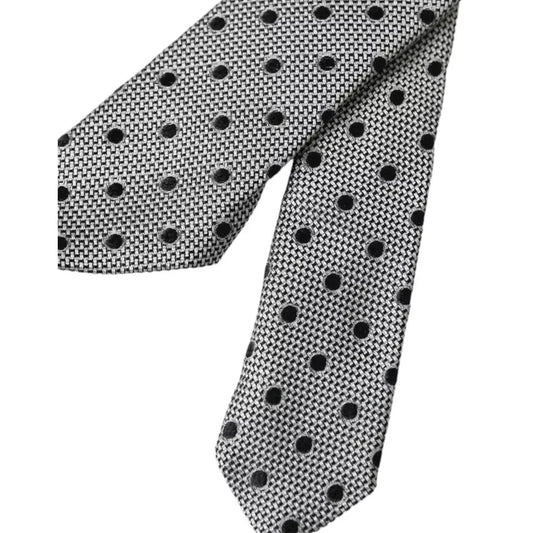 ربطة عنق رجالية قابلة للتعديل من دولتشي آند غابانا من الحرير الأسود المنقط بالأبيض والأسود