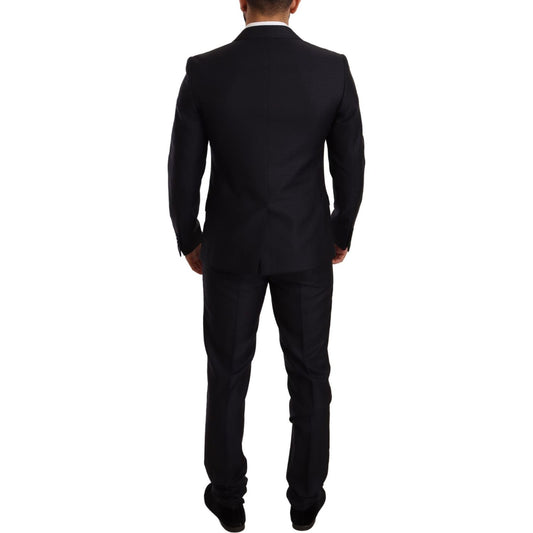 بدلة دولتشي آند غابانا الأنيقة ذات المقاس النحيف باللون الأزرق الداكن والمكونة من قطعتين من الصوف والحرير
