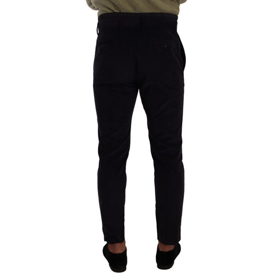 بنطلون دولتشي آند غابانا الفاخر من قماش مخملي ضيق باللون الأزرق الداكن