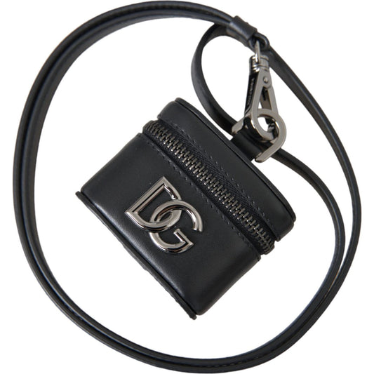 حافظة سماعات Airpods من دولتشي آند غابانا مصنوعة من الجلد الأسود العادي باللون الفضي
