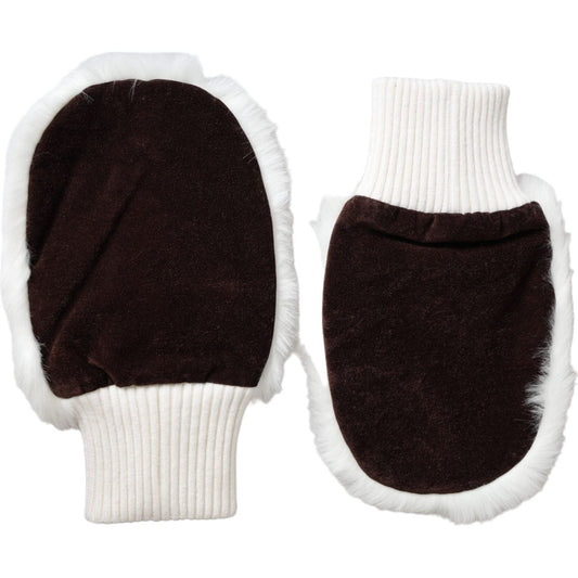 قفازات من الفرو الأكريليكي البني والأبيض من دولتشي آند غابانا