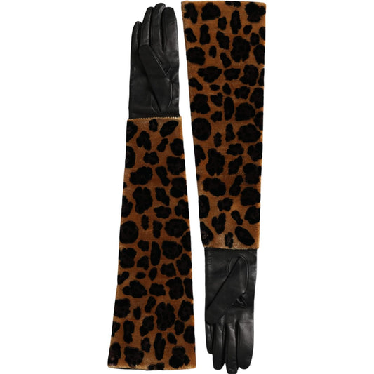 قفازات دولتشي آند غابانا الجلدية باللون البني والأسود بطول الكوع