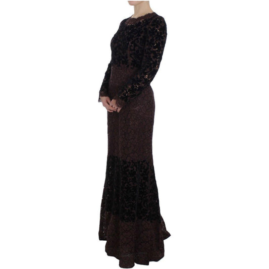 فستان ماكسي أنيق من الدانتيل باللون الأسود من دولتشي آند غابانا