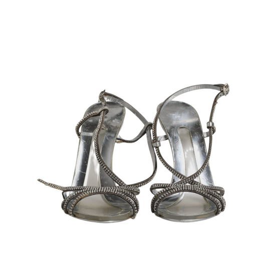 Dolce & Gabbana Silver Crystal Slingback KEIRA Sandals Shoes