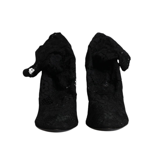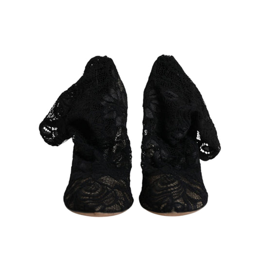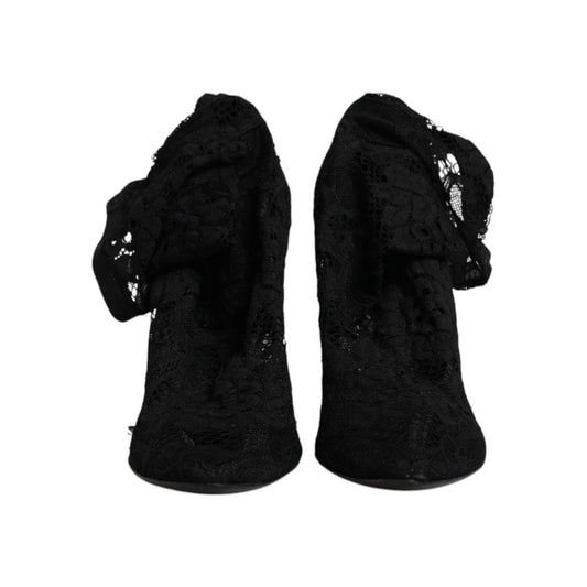 Dolce & Gabbana Black Lace Stretch Heels Mid Calf Boots Shoes