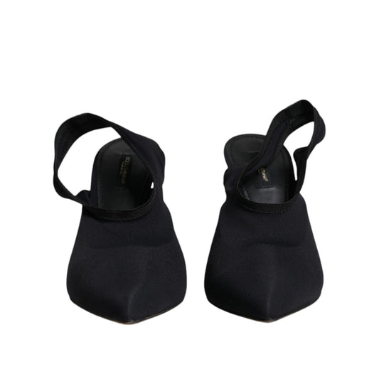 Dolce & Gabbana Black Jersey Stretch Heels Slingback Shoes