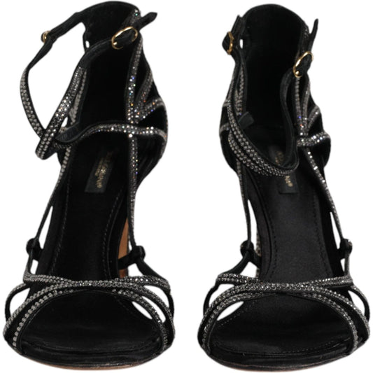 Dolce & Gabbana Black Strass Ankle Strap Heels Sandals Shoes