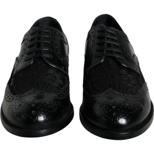 حذاء رسمي من دولتشي آند غابانا مصنوع من الجلد الأسود ومزين بزهور من الدانتيل