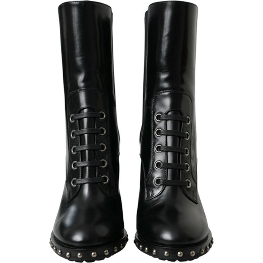 حذاء بوت من الجلد الأسود مرصع بالمسامير من دولتشي آند غابانا