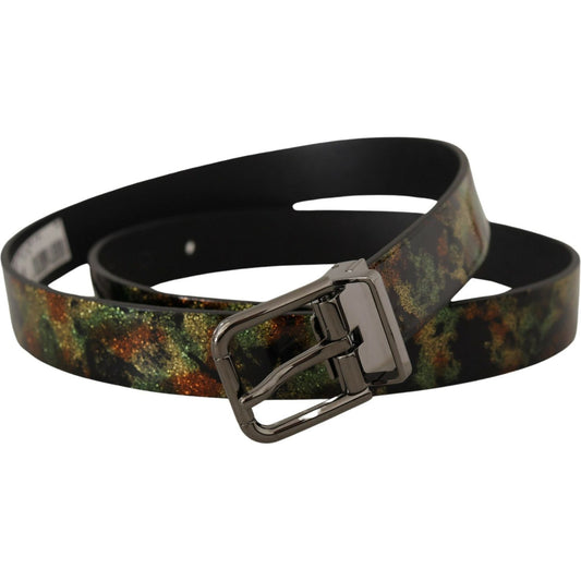 Dolce & Gabbana Multicolor Embossed Leather Black Metal Buckle Belt