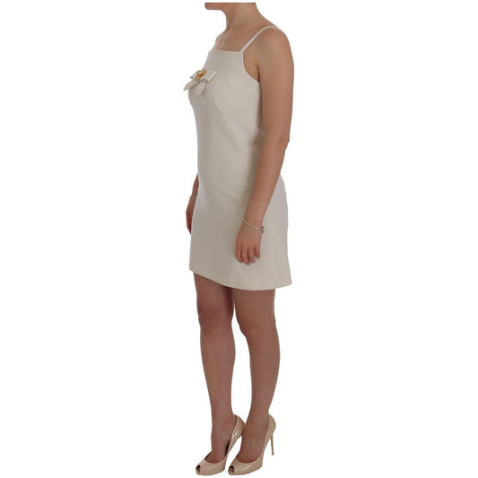 Dolce & Gabbana White Wool Stretch Brooch Shift Dress