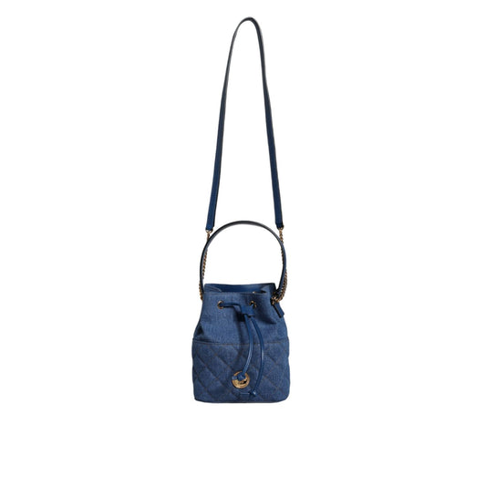Versace Blue Quilted Denim Leather Crossbody Shoulder Bag
