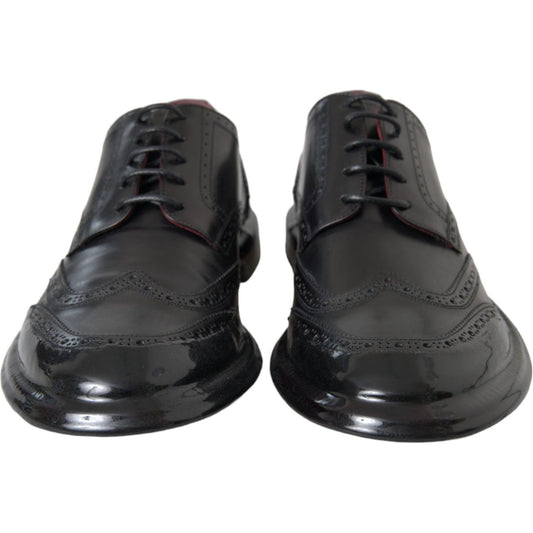 Dolce & Gabbana Black Leather Oxford Wingtip Formal Men Shoes