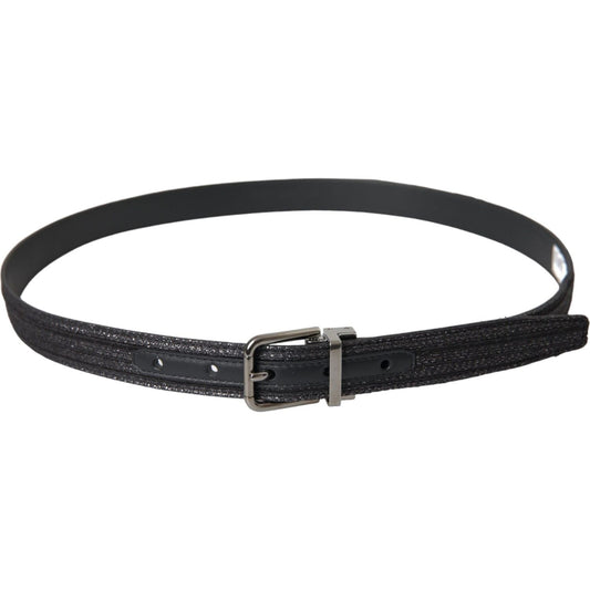 Dolce & Gabbana Black Glittered Leather Silver Buckle Belt