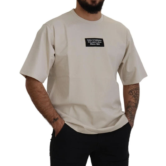 Dolce & Gabbana Ivory Cotton Ivory Printed Crewneck