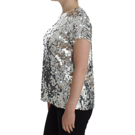 Dolce & Gabbana Silver Sequined Crewneck Blouse T-shirt Top