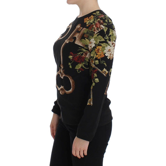 Dolce & Gabbana Black Key Floral Print Silk Blouse Top