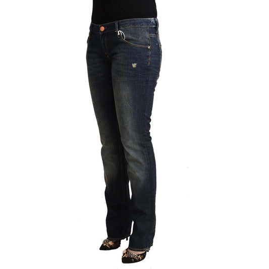 GF Ferre Blue Cotton Mid Waist Flared Denim Jeans
