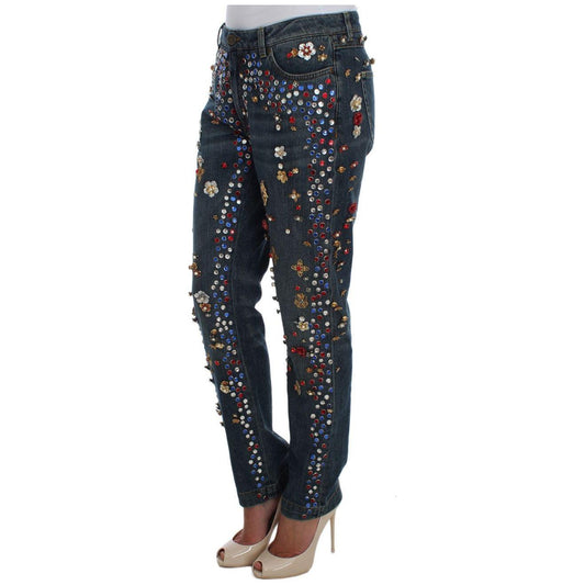 Dolce & Gabbana Crystal Roses Heart Embellished Jeans