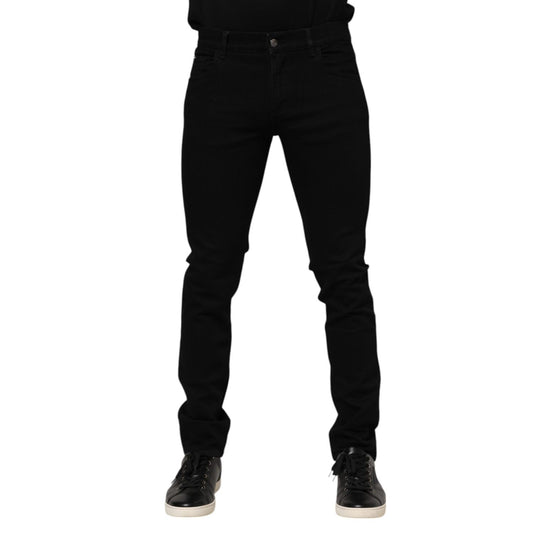 Dolce & Gabbana Black Cotton Logo Plaque Skinny Denim Jeans