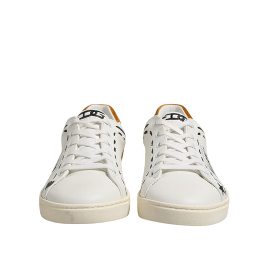 Dolce & Gabbana White Leather Printed Low Top Sneakers Shoes