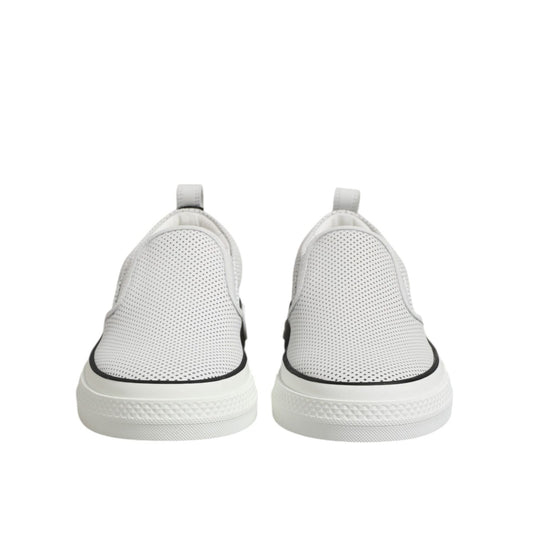 Dolce & Gabbana White Dotted Leather Slip On Men Sneakers Shoes