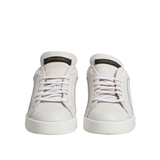 Dolce & Gabbana Black Calf Leather Portofino Sneakers Shoes