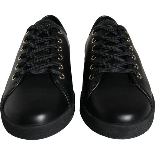 Dolce & Gabbana Black Leather Men Low Top Sneakers Shoes