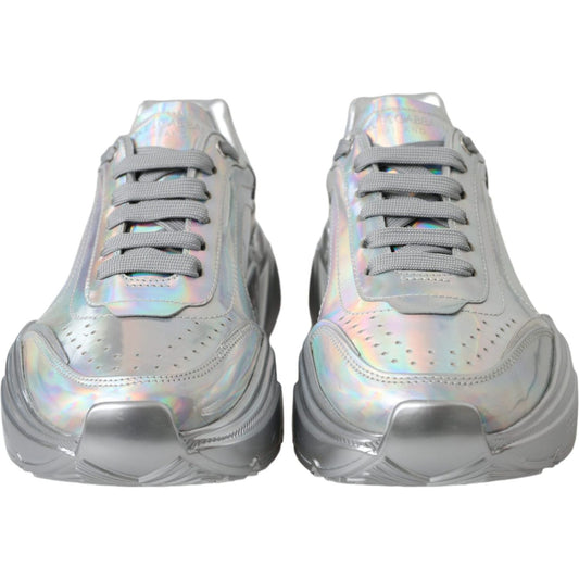 Dolce & Gabbana Silver Iridescent DAYMASTER Leather Sneakers Shoes