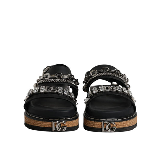 Dolce & Gabbana Black Crystal Embellish Strap Sandals Shoes