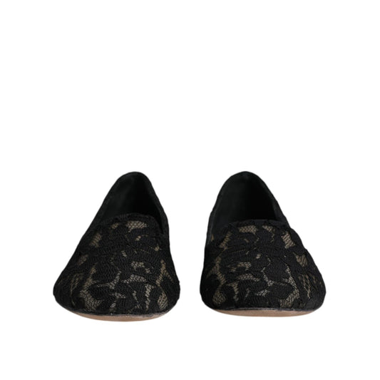Dolce & Gabbana Black Taormina Lace Slip On Flats Shoes