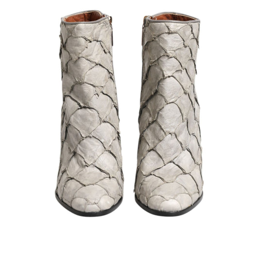 Dolce & Gabbana Off White Leather Heels Ankle Boots Shoes
