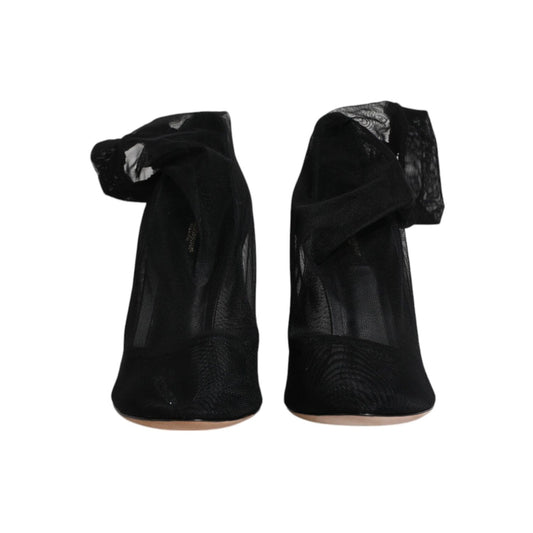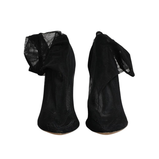 Dolce & Gabbana Black Silk Mesh Sock Style Heels Boots Shoes