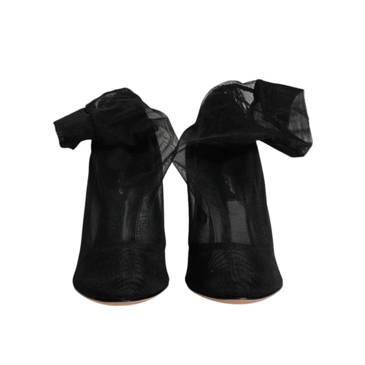 Dolce & Gabbana Black Tulle Stretch Heels Mid Calf Boots Shoes