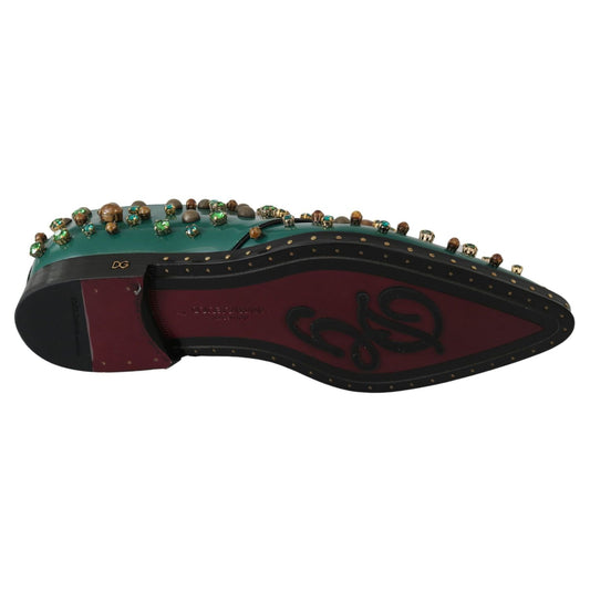 Dolce & Gabbana Green Leather Crystal Dress Broque Shoes