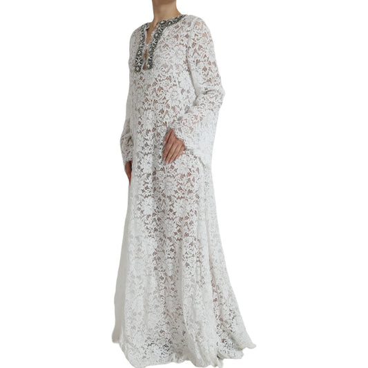 Dolce & Gabbana White Floral Lace Full Length Gown Dress