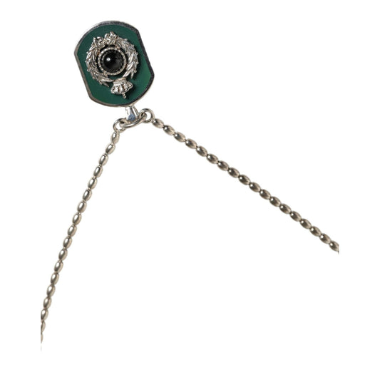 Dolce & Gabbana Silver Tone Brass Chain DG Logo Pendant Men Necklace