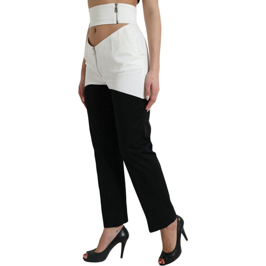 Dolce & Gabbana Black White Cotton Cut Out Waist Tapered Pants