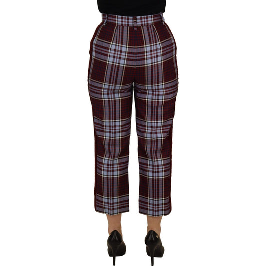 Dolce & Gabbana Gray Checked High Waist Cropped Trouser Pants