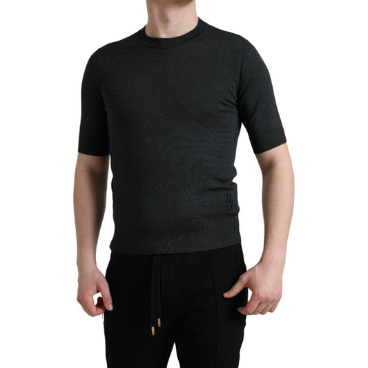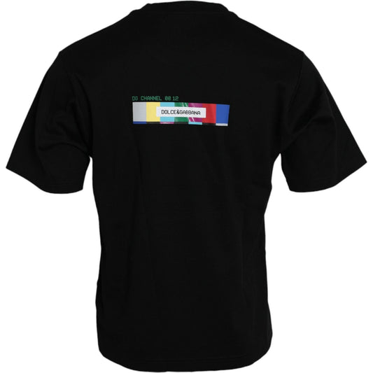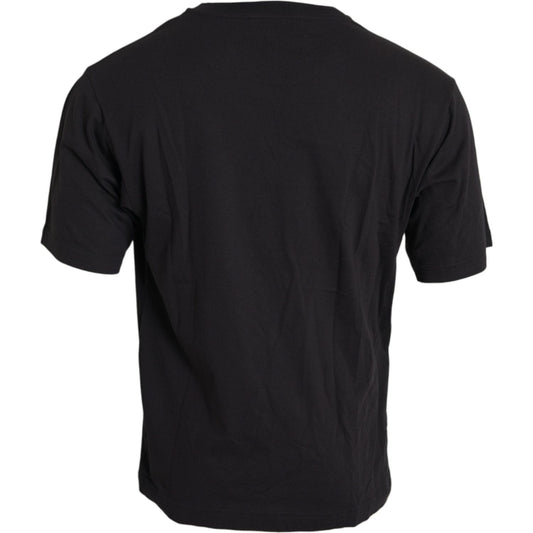优雅黑色棉质圆领 T 恤,带狗牌细节