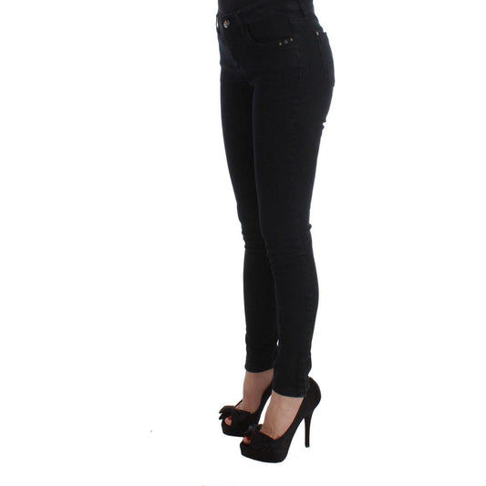 时尚黑色修身版型设计师牛仔裤