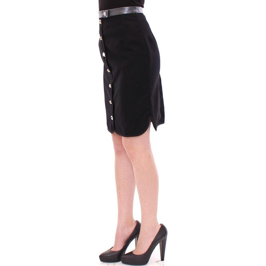 时尚黑色膝盖长度铅笔裙,带侧拉链